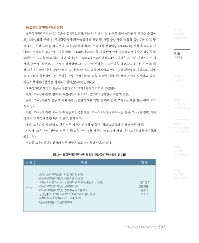 이러한 교육성과관리센터의 업무 현황을 표로 정리하면 다음과 같다.