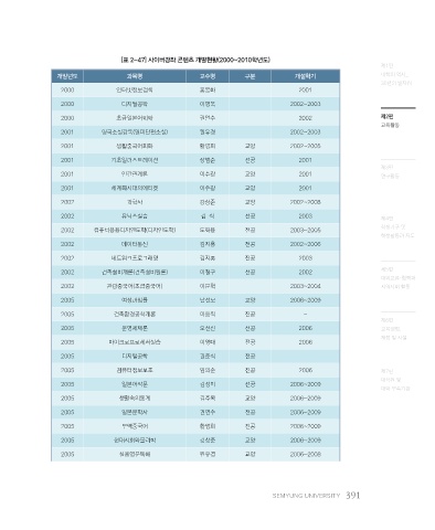 개발년도 과목명 교수명 구분 개설학기 대학의 역사_