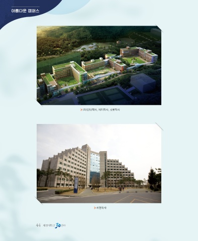 아름다운 캠퍼스 (좌)인성학사, 예지학사, 청룡학사 세명학사 44 세명대학교 년사