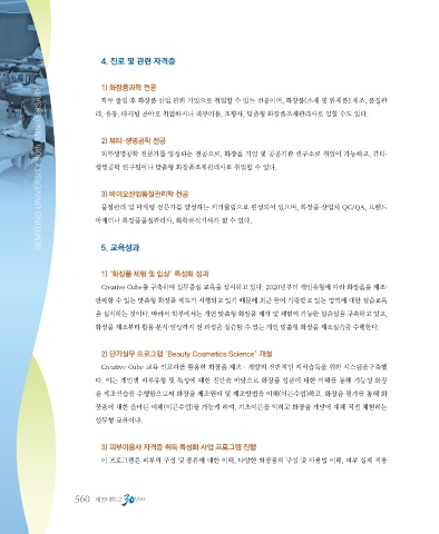 학부 졸업 후 화장품 산업 관련 기업으로 취업할 수 있는 전공이며, 화장품(소재 및 완제품) 제조, 품질관