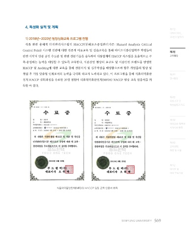 관련 식약처 인증 공인 수료증 및 관련 전문기술을 습득하여 식품업계에 HACCP 시스템을 효율적으로 구 교육활동