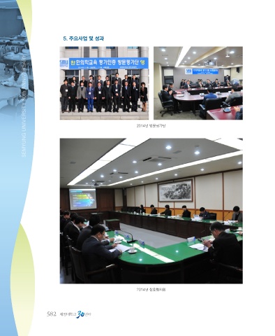 5. 주요사업 및 성과 SEMYUNG UNIVERSITY 30th ANNIVERSARY 2014년 방문평가단 2014년 상호협의회 582 세명대학교 년사