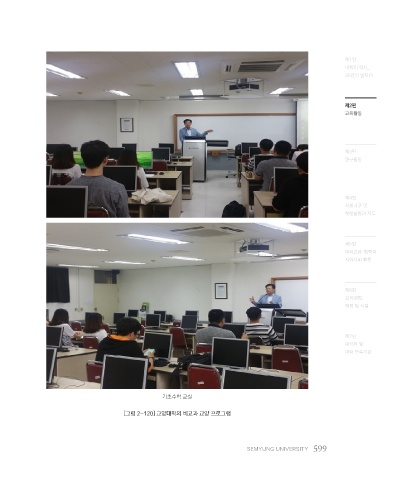 제1편 대학의 역사_ 30년의 발자취 제2편 교육활동 제3편 연구활동 제4편 학생기구 및 학생활동과 지도 제5편 대외교류·협력과 지역사회 활동 제6편 교육행정, 재정 및 시설 제7편 대학원 및 대학 부속기관 기초수학 교실 [그림 2-120] 교양대학의 비교과 교양 프로그램 SEMYUNG UNIVERSITY 599