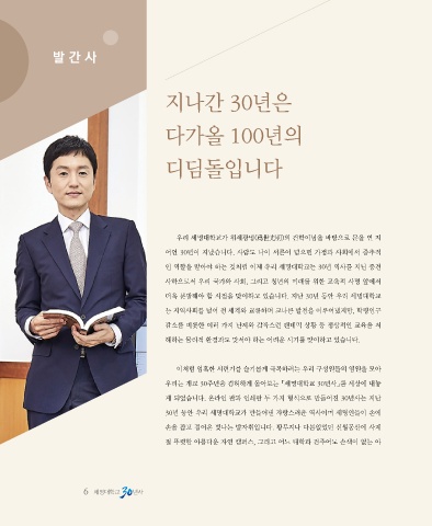 우리는 개교 30주년을 겸허하게 돌아보는 「세명대학교 30년사」를 세상에 내놓