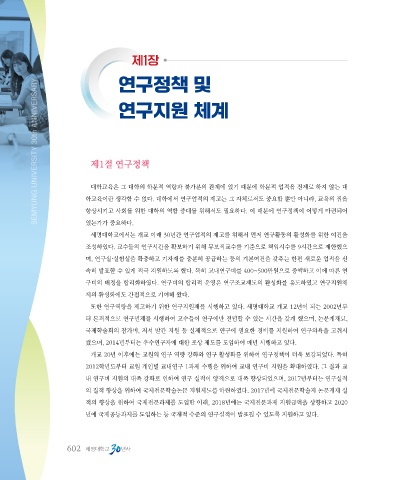 세명대학교에서는 개교 이래 30년간 연구업적의 제고를 위해서 먼저 연구활동의 활성화를 위한 여건을