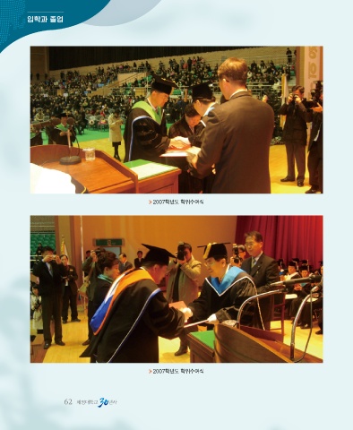 입학과 졸업 2007학년도 학위수여식 2007학년도 학위수여식 62 세명대학교 년사