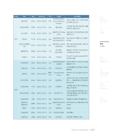 학년도 학과 성명 연구년기간 국가 기관명 연구과제명