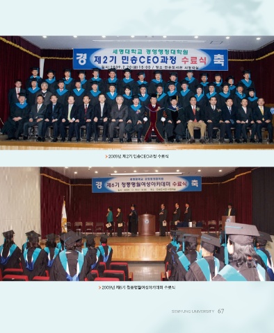 2009년 제2기 민송CEO과정 수료식 2009년 제6기 청풍명월여성아카데미 수료식 SEMYUNG UNIVERSITY 67