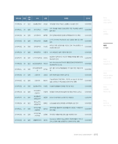 2019학년도 41 일반 간호학과 김명희 한국 여성의 출산 연령과 삶의 질 5,000천원 대외교류·협력과