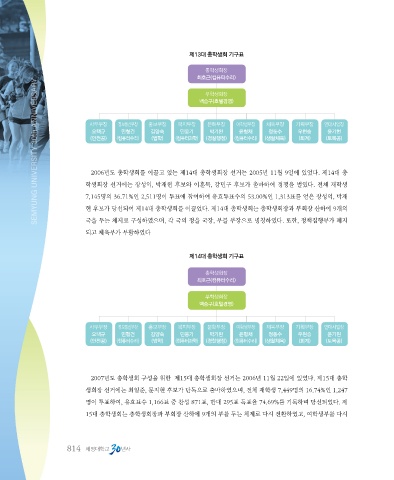 현 후보가 당선되어 제14대 총학생회를 이끌었다. 제14대 총학생회는 총학생회장과 부회장 산하에 9개의