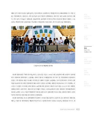 제와 장기 자랑이 있었고 둘째 날에는 민속씨름(남), 팔씨름(여), 학과별 배구 등 체육대회와 미스 세명 선