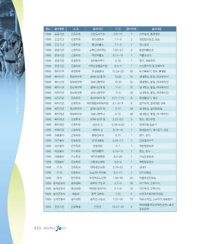 연도 봉사명칭 소 속 봉사기관 기 간 참가인원 봉사내용