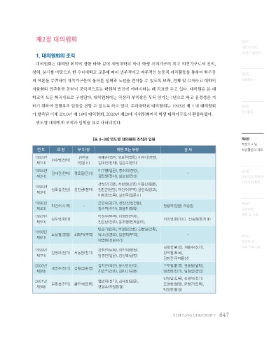 연도별 대의원회 조직과 임원을 표로 나타내었다.