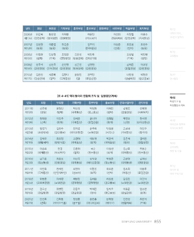 [표 4-41] 역대 동아리 연합회 조직 및 임원명단(계속)