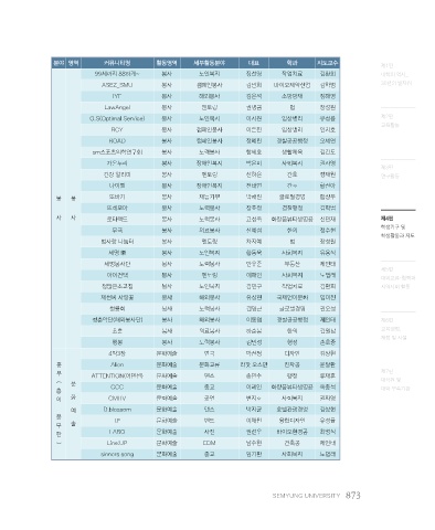 분야 영역 커뮤니티명 활동영역 세부활동분야 대표 학과 지도교수 제1편