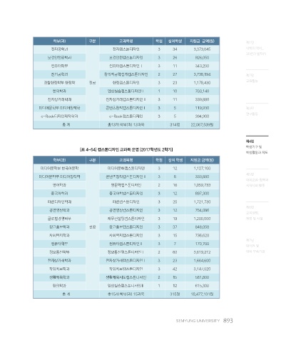 학부(과) 구분 교과목명 학점 참여학생 지원금 금액(원) 제1편