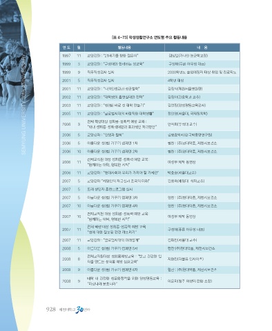 [표 4-73] 학생생활연구소 연도별 주요 활동내용