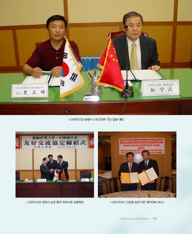 20050724 송원시 교육국정화 국장 일행 내방 20051029 염재선 총장 중국 곡부시와 교류협정 20070321 김광림 총장 대만 명전대학 MOU SEMYUNG UNIVERSITY 93