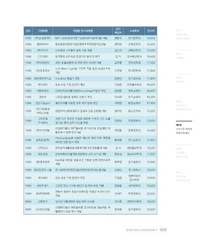 년도 기업체명 기업별 연구과제명 소속학과 연구비 제1편