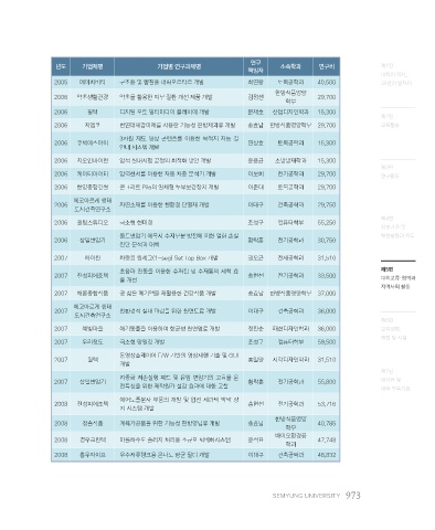 년도 기업체명 기업별 연구과제명 소속학과 연구비 제1편