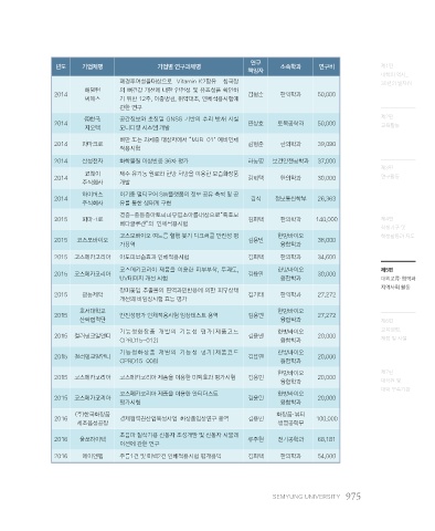 년도 기업체명 기업별 연구과제명 소속학과 연구비 제1편