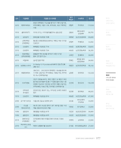 년도 기업체명 기업별 연구과제명 소속학과 연구비 제1편