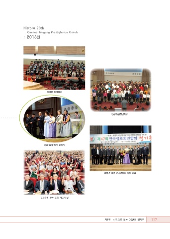 History 70th Gimhae Jungang Presbyterian Church : 2016년 섬김국 헌신예배 헌금특송(청년지구) 장로·집사·권사 은퇴식 이성만 장로 전국연합회 회장 취임 교단주최 전국 교회 기도의 날 117 제1편 사진으로 보는 70년의 발자취