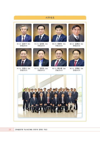 시무장로 제12대 김동구 장로 제12대 김경호 장로 제12대 최현수 장로 제12대 김종규 장로 장립(2019) 장립(2019) 장립(2019) 장립(2019) 제12대 정흥수 장로 제12대 정원옥 장로 제12대 박근태 장로 제12대 신대용 장로 장립(2019) 장립(2019) 장립(2019) 장립(2019) 28 김해중앙교회 70년사(은혜와 축복으로 달려온 70년)