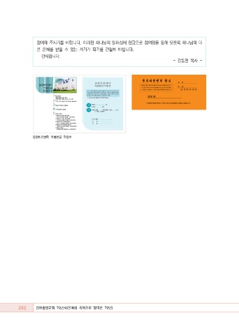참여해 주시기를 바랍니다. 이러한 하나님의 일하심에 헌금으로 참여함을 통해 모쪼록 하나님의 더 큰 은혜를 받을 수 있는 계기가 되기를 간절히 바랍니다. 감사합니다. - 강동명 목사 - 중앙비전센터 특별헌금 작정서 282 김해중앙교회 70년사(은혜와 축복으로 달려온 70년)