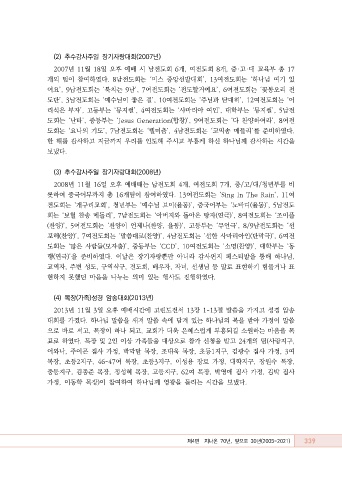 도회는 ‘많은 사람들(모자춤)’, 중등부는 ‘CCD’, 10여전도회는 ‘소명(찬양)’, 대학부는 ‘동