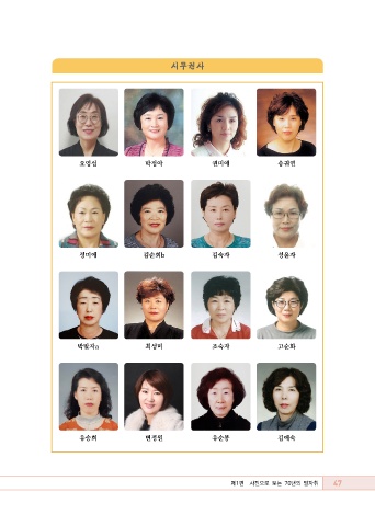 시무권사 오영섭 박정아 권미애 송귀연 정미애 김순희b 김숙자 성윤자 박말자a 최성미 조숙자 고순화 유승희 변정원 유순봉 김애숙 47 제1편 사진으로 보는 70년의 발자취