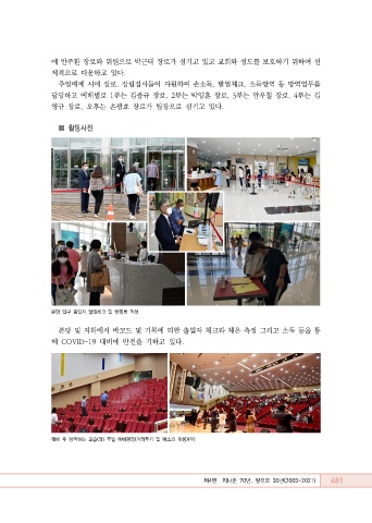 본당 및 지하에서 바코드 및 기록에 의한 출입자 체크와 체온 측정 그리고 소독 등을 통