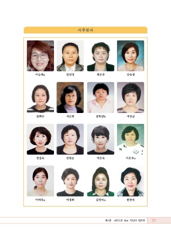 시무권사 이승희a 김선정 허은주 강숙경 김희수 서은희 김복남b 서정금 정점숙 진현순 이은숙 이은주a 이미옥a 이경화 김인숙a 한찬숙 57 제1편 사진으로 보는 70년의 발자취