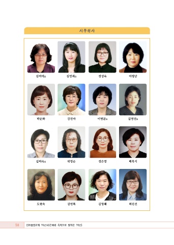 시무권사 김미애a 김영희a 정성숙 이행남 박순화 강진아 이명분a 김영신a 김미숙a 박영순 정은영 배록지 도현숙 김연복 김영혜 허진선 58 김해중앙교회 70년사(은혜와 축복으로 달려온 70년)