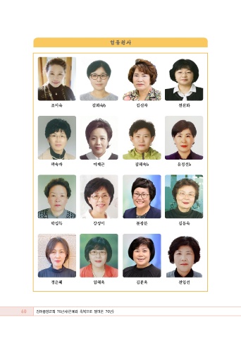 협동권사 조미숙 김희숙b 김선자 전찬화 곽숙자 이재근 김해숙b 유정선b 박심득 강성이 문광분 김동숙 정은혜 임해옥 김문옥 전임선 60 김해중앙교회 70년사(은혜와 축복으로 달려온 70년)