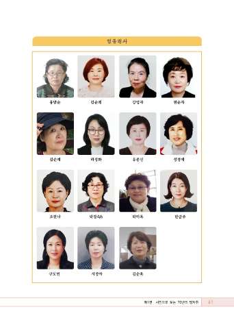 협동권사 홍말순 김순례 강영자 현순자 김순재 하정화 유종신 정경애 조한나 박경숙b 박미옥 한금주 구도연 서정아 김순옥 61 제1편 사진으로 보는 70년의 발자취