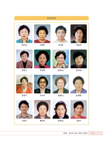 은퇴권사 정영자a 이영란 김선래 김화자 최영구 박정애 김종숙a 김순희a 양경이 차수자 김현숙a 김정희a 김차순 배순영 김미자a 김옥이 65 제1편 사진으로 보는 70년의 발자취
