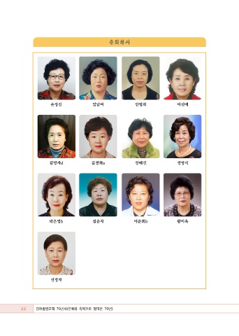 은퇴권사 손정선 임남여 안명희 이선애 김영자d 김경희a 장태선 성영식 박은영b 설춘자 이춘희b 황미옥 신정자 66 김해중앙교회 70년사(은혜와 축복으로 달려온 70년)