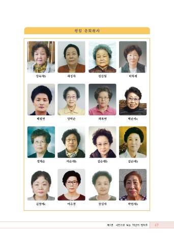 전입 은퇴권사 장숙자b 허정자 김삼월 박복례 배필연 양덕순 허옥연 박순자c 정계순 이순자b 김순애b 김순녀b 김영애c 이유경 장실자 박연자b 67 제1편 사진으로 보는 70년의 발자취