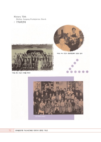 History 70th Gimhae Jungang Presbyterian Church : 1960년대 박태수 목사 위임식 환영회(앞쪽이 설영순 집사) 박태수 목사 위임식 예배를 마치고 성탄 축하(1965년) 72 김해중앙교회 70년사(은혜와 축복으로 달려온 70년)