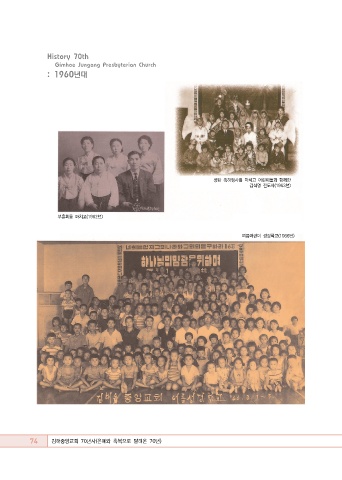 History 70th Gimhae Jungang Presbyterian Church : 1960년대 성탄 축하행사를 마치고 어린이들과 함께한 김석영 전도사(1963년) 부흥회를 마치고(1962년) 여름어린이 성경학교(1966년) 74 김해중앙교회 70년사(은혜와 축복으로 달려온 70년)