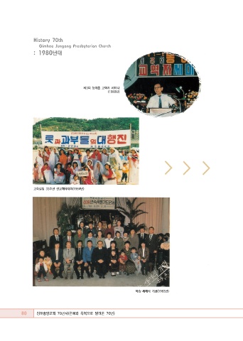History 70th Gimhae Jungang Presbyterian Church : 1980년대 제3회 농어촌 교역자 세미나 (1983년) 교회설립 33주년 선교체육대회(1984년) 학습·세례식 기념(1983년) 80 김해중앙교회 70년사(은혜와 축복으로 달려온 70년)