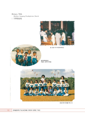 History 70th Gimhae Jungang Presbyterian Church : 1990년대 중·고등부 하기수련회(1990년) 중앙유치원생들의 해운대 나들이(1990년) 중앙유치원 원아들(1990.10) 82 김해중앙교회 70년사(은혜와 축복으로 달려온 70년)