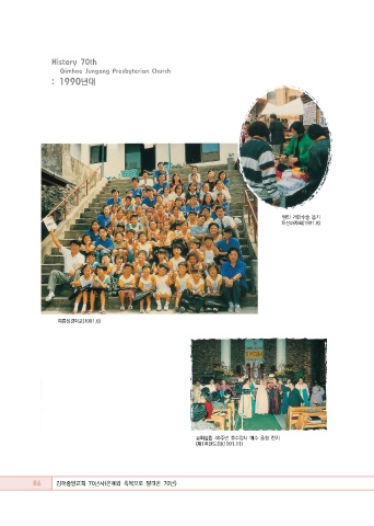History 70th Gimhae Jungang Presbyterian Church : 1990년대 맹인 개안수술 돕기 자선바자회(1991.8) 여름성경학교(1991.8) 교회설립 40주년 추수감사 예수 초청 잔치 (제1여전도회)(1991.11) 86 김해중앙교회 70년사(은혜와 축복으로 달려온 70년)