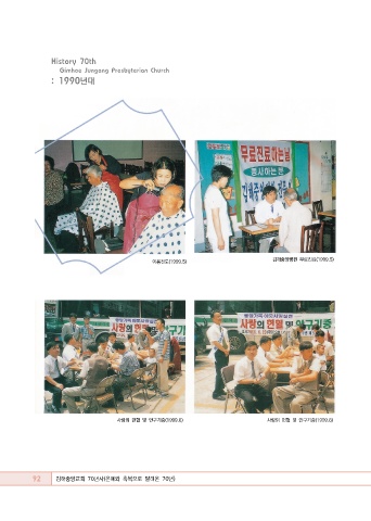 History 70th Gimhae Jungang Presbyterian Church : 1990년대 이용전도(1999.5) 김해중앙병원 무료진료(1999.5) 사랑의 헌혈 및 안구기증(1999.6) 사랑의 헌혈 및 안구기증(1999.6) 92 김해중앙교회 70년사(은혜와 축복으로 달려온 70년)