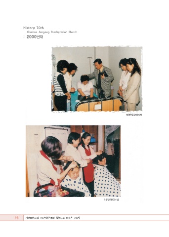 History 70th Gimhae Jungang Presbyterian Church : 2000년대 병원전도(2001년) 미용전도(2001년) 98 김해중앙교회 70년사(은혜와 축복으로 달려온 70년)