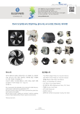 미늄, 플라스틱), 모타고정망, 팬보호망, 에어커튼 등을 주요품목 - 삼상 팬모타 (Three Phase AC Induction Motors)