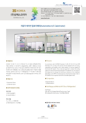 자동차 에어컨 시스템의 열적 능력을 결정하는 정확도, 재현성 및 유연성 Standard 210, 410 etc, this facility will be supplied with accuracy,