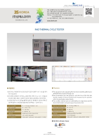 고온측 온도 범위 RT ~ 123℃(Glycol 100%)℃± 1.0℃ High temp. side temp. range RT ~ 123 (Glycol 100%) ± 1.0