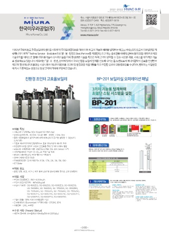 로 창조해오고 있습니다. 미우라는 「열·수·환경」분야에 있어서 국내 산업용 보일러 업계를 선도해 나가는 톱 브랜드로서 에너지절약의 공로를 인정받아